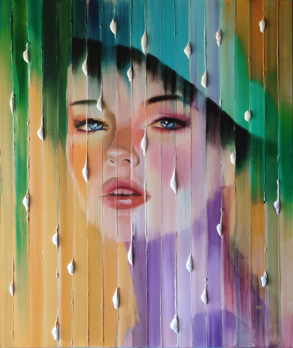 Acrylic paint and pastels on canvas